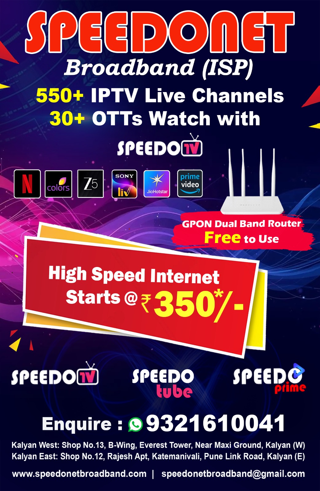 Speedonet is a trusted internet service provider delivering high-speed, stable, and affordable broadband solutions for homes, businesses, and enterprises. With cutting-edge fiber technology and a customer-first approach, we ensure seamless connectivity for streaming, gaming, work-from-home, and business operations.